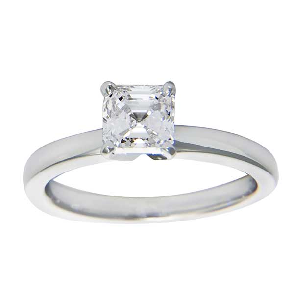 Engagement Ring, Comfort fit solitaire ring with square emerald cut diamond.