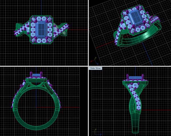 b) On receiving the diamonds and sketches, we created a CAD (computer added design) to meet the customer’s desired ring.