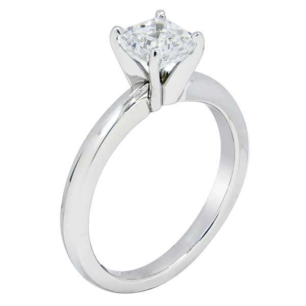 Engagement Ring, Comfort fit solitaire ring with square emerald cut diamond.