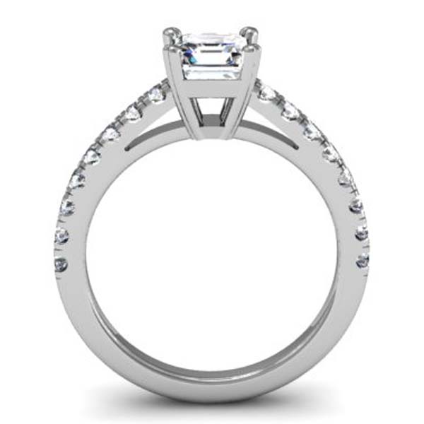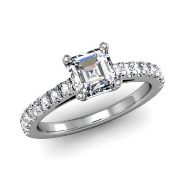 Engagement Ring, ring with matching band having round diamonds in a shared prong setting.